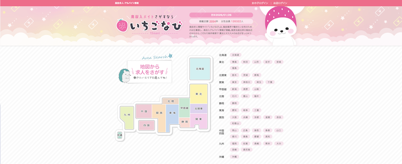 いちごなびは、全国の風俗求人を幅広くカバーする総合型の求人サービスです。