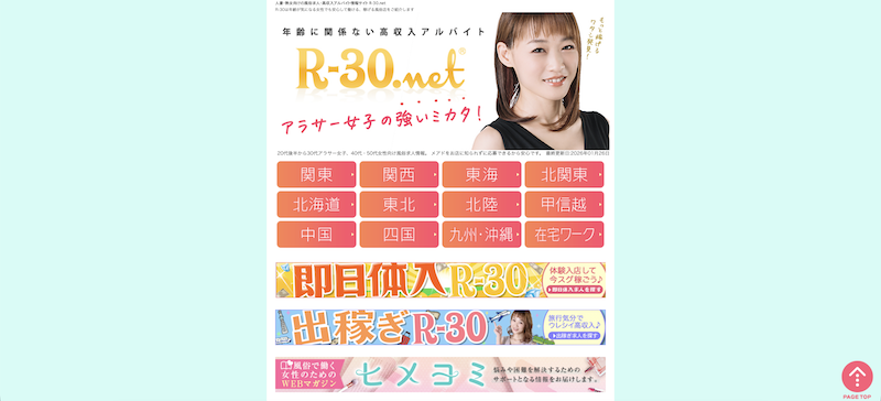 R-30.netは、サイト名のとおり30代から風俗で働きたいと思っている方を専門にサポートする風俗求人サイトです。
