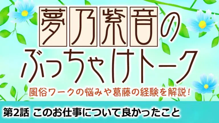 もう、かれこれ10年近く風俗のお仕事をしている、夢乃紫音です。