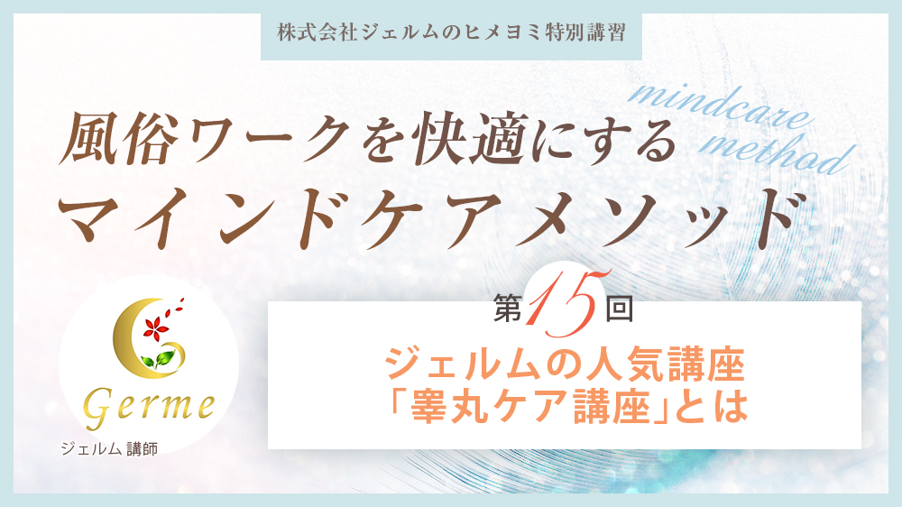 ジェルムでは女性が男性にマッサージを行う「睾丸ケア講座」、男性がご自身でケア出来る「睾丸セルフケア講座」をご用意しております。