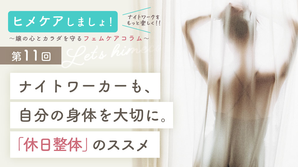 ある意味体力仕事でもある夜職のみなさんですが、自身の身体はきちんといたわっていますか?今はセルフケアの方法もたくさんネットで見ることができますが、今回は「休日に身体を整えにいく」というテーマをお伝えしていきます。