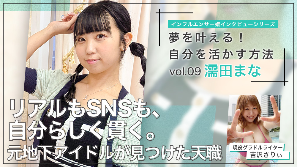 その後、ハメ撮り好きが高じてAV女優となり、昔のアイドル活動が不完全燃焼だったこともあり、道玄坂69に加入しアイドル活動を始めたまなさん。彼女はとにかくSNSが強く「バズらせるのが得意です♪」と話す。