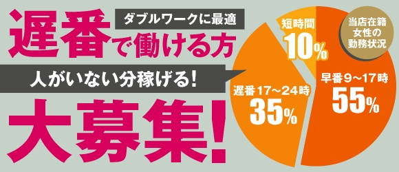 50名以上の在籍女性と決して少なくはない在籍数ですが、6割以上の方が早い時間の女性達。