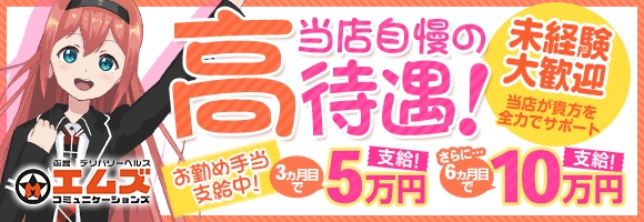 入店祝い金5万円支給!さらに6ヵ月目に10万円支給!さらにさらに!9カ月目と12カ月目にも支給いたします。