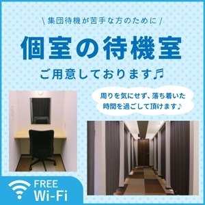 大好評!2020年5月に新しくなった個室の待機室が清潔で快適ですよ!(内装専門業者が施工)