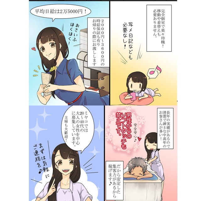 胸を見せたり下着になったりリップなど一切のオプションがありません。 衣装はナース服。 最初から最後まで脱いだり、見せたりすることはありません。 マンションでの性的サービスは犯罪・違法です。 ミヤコは、神戸で唯一の「新風営法届出済み」の店舗型のお店です。 すぐ隣の部屋で女性・男性スタッフが待機で安心。 写メ日記も一切なし。wifi無料。 御一人の個室待機で気兼ねありません。 |
