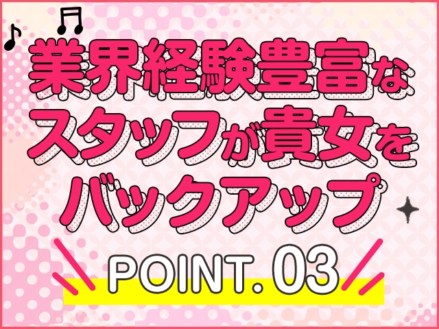 ■一日体験入店も大歓迎。(お小遣いが足りない時だけでも可) ■目標設定をし辞めたくなる日までいつまでもお仕事可能です。 ■朝9時からLASTで出勤頂けますのでお好きな時間をお選びください。 ■中抜け、中途勤務終了可能です‼予約などが入っていればお仕事優先です!! |