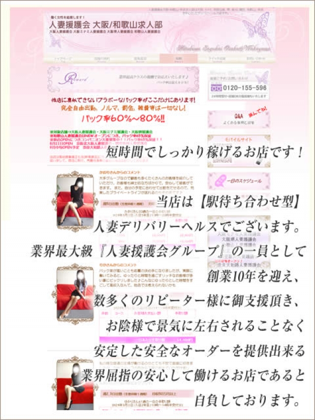 【リピートされる度にバック率ジャンプアップ!】 【受付時間、土日出勤、延長等でもポイント加算でバック率UP!】 ☆90分の接客で12600円~17600円確実! ☆月に100万円以上ガッチリ稼ぎたい方、 ☆週1~2回コッソリ十数万円程度稼ぎたい方、 ☆完全自由出勤!直行直帰OK!自宅待機OK! ☆プライベート感覚でコッソリ!シッカリ!稼げます! |