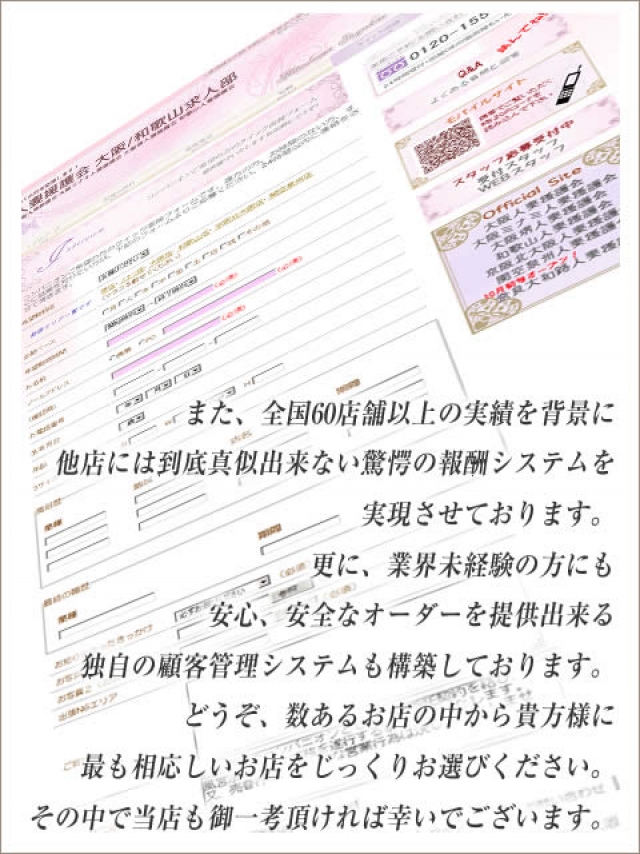 初心者歓迎、アリバイ対策、日払い可、体験入店可、最低保証有、自由出勤制、罰金・ノルマなし、寮完備