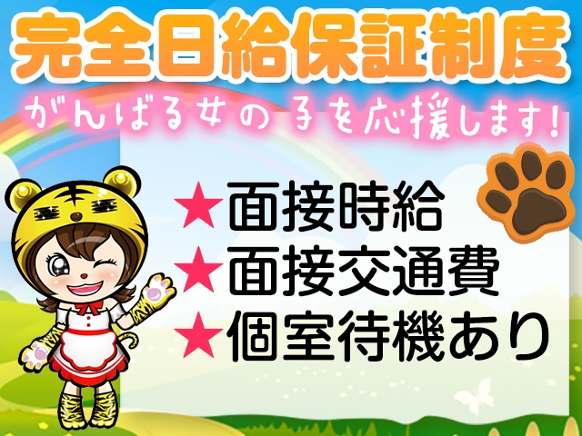 初心者歓迎、アリバイ対策、日払い可、体験入店可、最低保証有、自由出勤制、交通費支給、罰金・ノルマなし、寮完備、個室待機☆