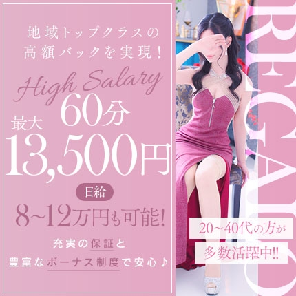 ・ベーシック 60分 10,000円~ 90分 14,500円~ 120分 19,000円~ 延長毎に6,500円 ・プレミア 60分 11,500円~ 90分 16,000円~ 120分 20,500円~ 延長毎に8,000円 アダルト ・ベーシック 60分 8,000円~ 90分 12,000円~ 120分 16,000円~ 延長毎に5,500円 ・プレミア 60分 9,500円~ 90分 13,500円~ 120分 17,500円~ 延長毎に8,000円 その他にも指名料+1,000円 更に前々日のご予約で+1,000円 オプション料金全額バックなど しかも、全額日払いだから毎日お給料日! |