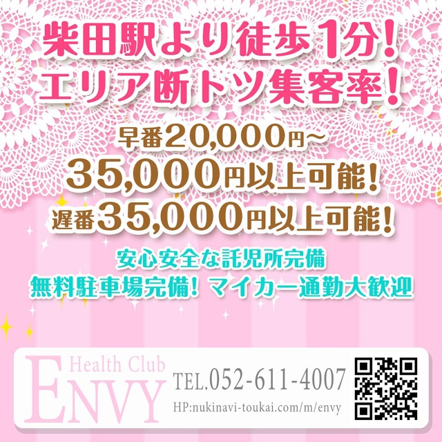 愛知県名古屋市南区の南端、名鉄常滑線の柴田駅から歩いて1分。国道247号線、柴田本通3交差点の目の前が勤務地。周辺はファッションヘルスと熟女キャバクラ、キャンパスパブと昔ながらのキャバレーなど、名古屋市南区の一大歓楽街。名古屋の中心部で働くとバレそうだから避けたい、でも郊外すぎると稼げそうにない。中間くらいのちょうどいいところがないかなぁと思っている女の子におすすめ。ただし、柴田はおそらく誰もが想像している以上に風俗バイトで稼げます。考えていることは男性も一緒。名古屋のど真ん中だと風俗に通っているってバレちゃいそうだし、名古屋から遠いと遊びに行くのも大変。都合よく遊びに行けそうなところがないかなぁと思っている男性がたくさん遊んでいるのが柴田だからです。