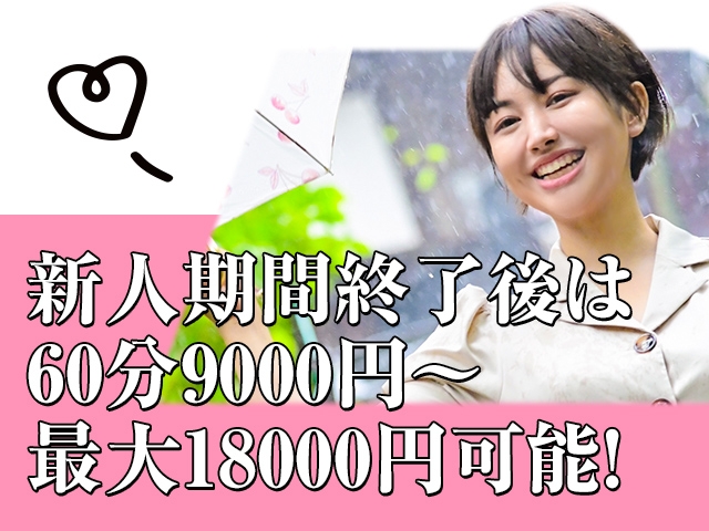 ヘルスよりも負担がなくて、エステよりも楽しく高収入! 【給与例】 (アルバイト勤務)→日給30,000円以上、月30万以上 (レギュラー勤務)→日給70,000円以上、月100万以上 メインコース90分最低12,000円+本指名バック+α(オプションバック)=12,000円+α メインコース120分最低15,000円+本指名バック+α(オプションバック)=15,000円+α ※完全全額日払い ※本指名バック+オプションフルバック ※取材協力費あり 最低バック一覧 60分8,000円+(本指名バック+オプションバック) 75分10,000円+(本指名バック+オプションバック) 90分12,000円+(本指名バック+オプションバック) 120分15,000円+(本指名バック+オプションバック) 面接時に再度詳細にご説明させて頂きます。 |