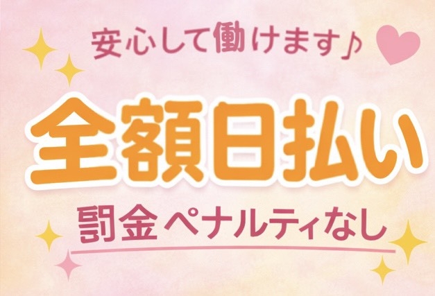 ★全額日払い、罰金ノルマなし ★指名料全額バック ★ボーナスあり ★オプションフルバック |